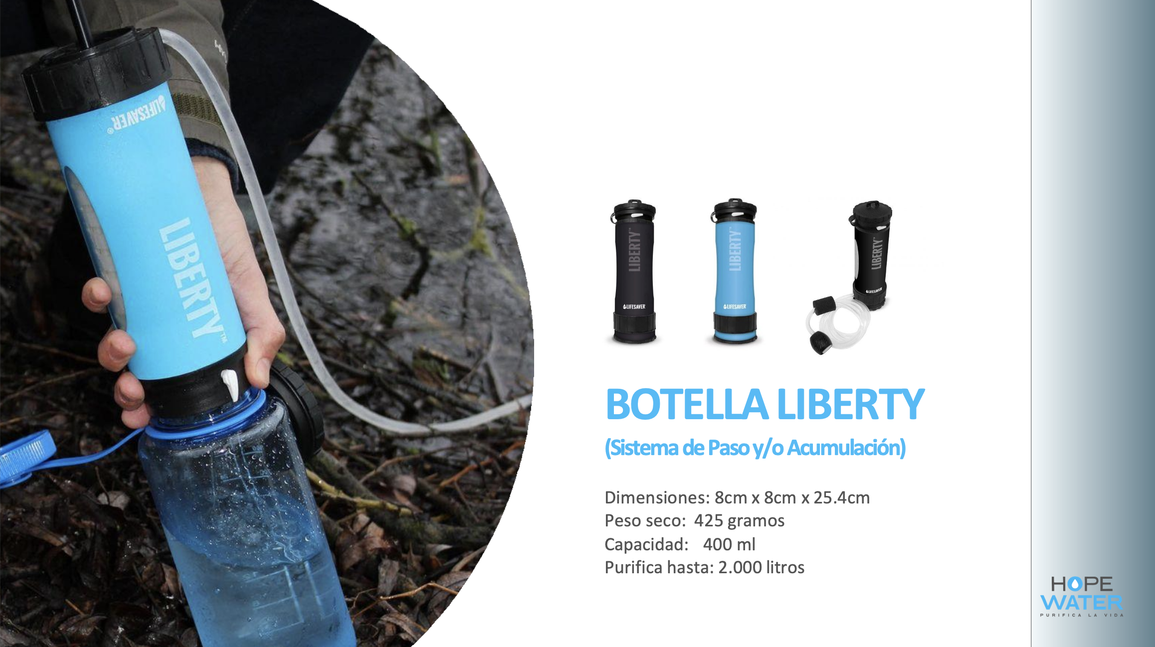 Para hacerlo posible, nos aliamos con LifeSaver®, empresa británica fundada en 2007 que tras grandes crisis humanitarias, se propuso crear soluciones que permiten obtener agua potable de manera inmediata y fácilmente, sin depender de infraestructura compleja.